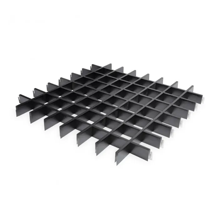 Подвесной потолок Грильято с размерами ячеек 100x100 мм и высотой профиля 40 мм – это оптимальное решение для создания стильного и функционального интерьера в коммерческих и общественных помещениях.