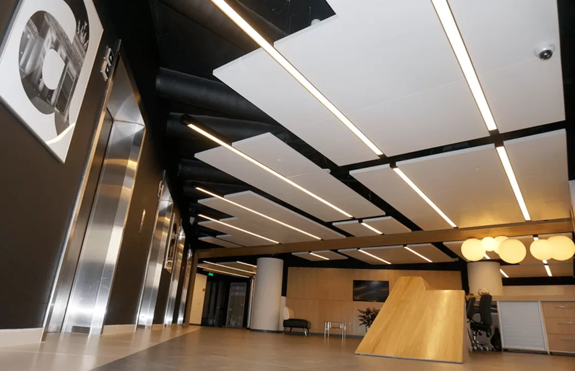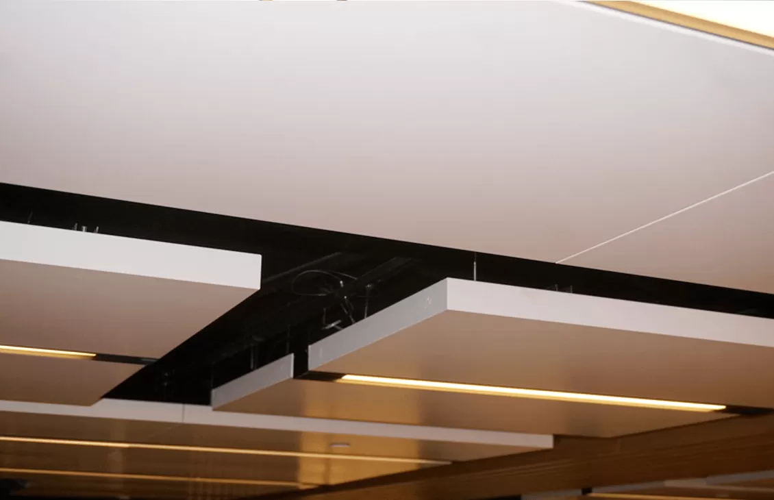Потолок-остров позволяет значительно снизить уровень шума, если он превышает 90 дБА, что может вызвать дискомфорт и повреждение органов слуха.