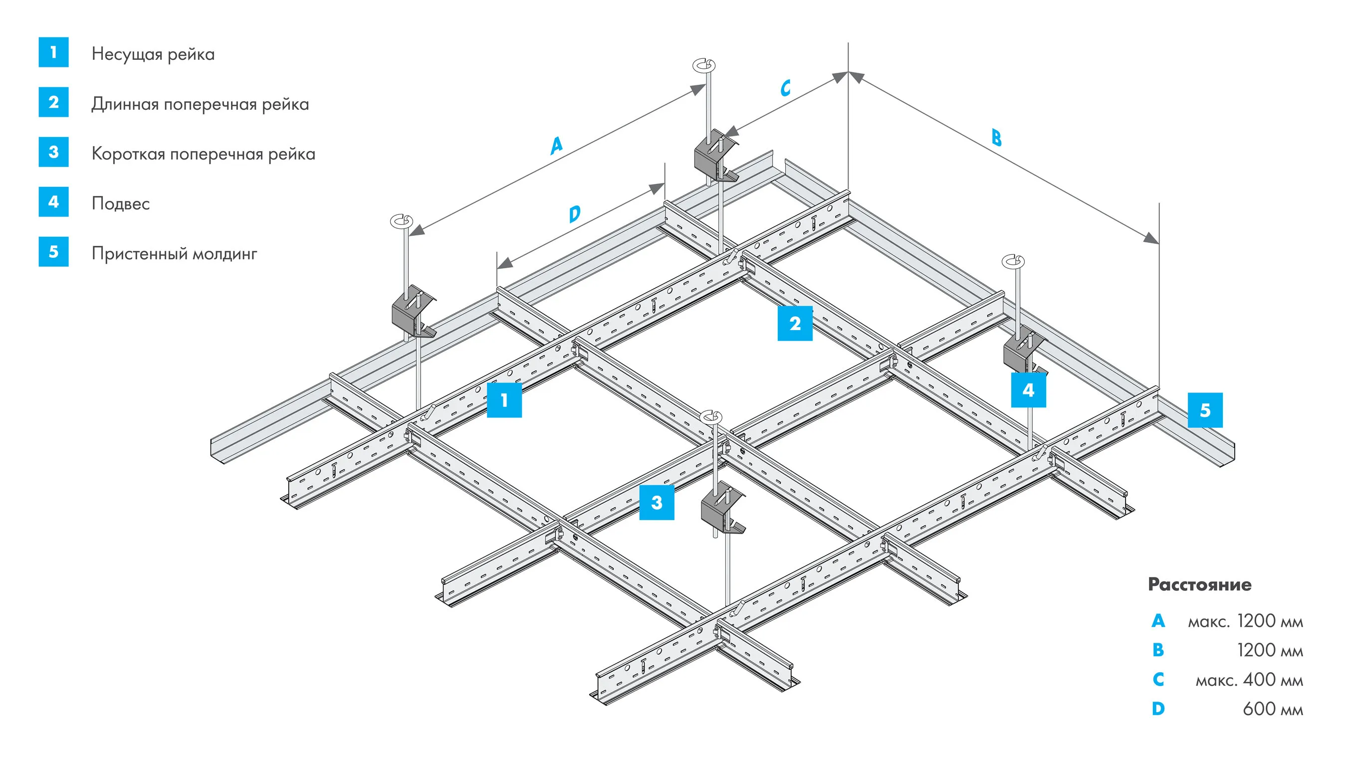 - Подходит для потолочных плит с кромкой Board и Tegular 24;